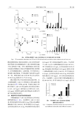 Fig.4 TP concentration distribution and TP load of LID and traditional communities under moderate rain and heavy rain