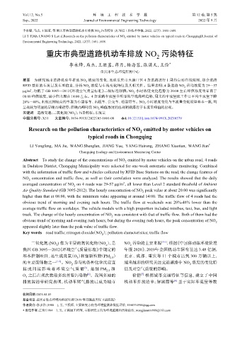 摘要 为研究城市道路机动车排 放 NO 浓度的变化,选取重庆市大渡口 区 4 条道路进 行 1 周的自动在线监测,结合道路
