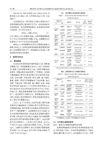 消费者、脊椎动物/次级消费 者 3 个营养级。急性毒 表 2 四环素的水生生物慢性毒性值