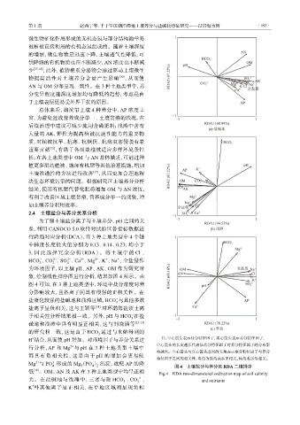 低 [38] 。OM、A N 及 A K 在 3 种土地类型中均呈正相 Fig.4 RDA two-dimensional ordination map of soil salinity