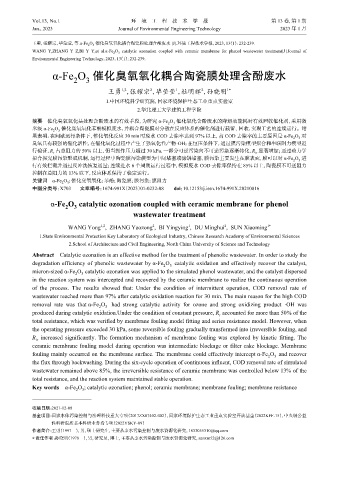 关键词 α-Fe O ;催化臭氧氧化;苯酚;陶瓷膜;膜污染;膜阻力