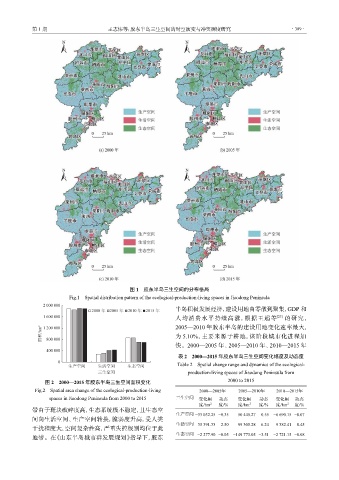 表 2 2000—201 年胶东半岛三生空间变化幅度及动态度