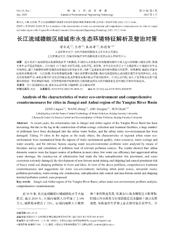 曾令武,王峥,朱洪涛,等.长江流域赣皖区域城市水生态环境特征解析及整治对 策 [J].环境工程技术学报,2023,13(1):36-46.