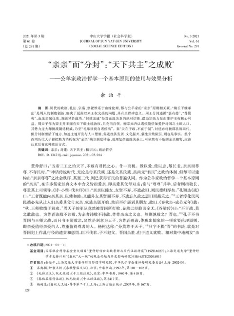 关键词:亲亲;封建;天下共主;柳宗元;政治哲学