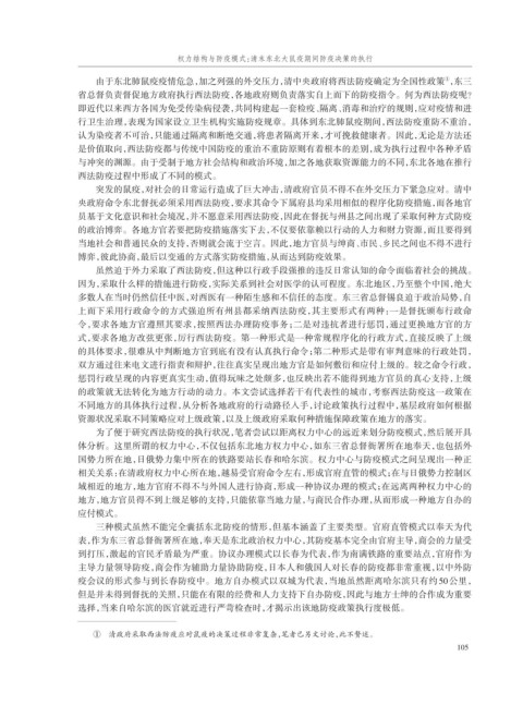 权力结构与防疫模式:清末东北大鼠疫期间防疫决策的执行