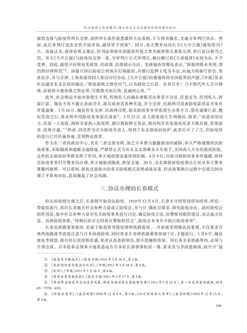 权力结构与防疫模式:清末东北大鼠疫期间防疫决策的执行