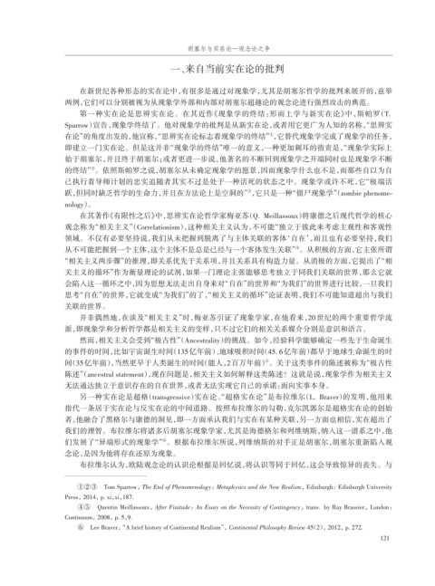 ⑥ Lee Braver,“A brief history of Continental Realism”,Continental Philosophy Review 45(2),2012,p. 272.