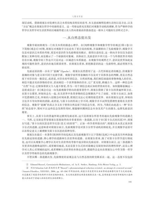 不管从哪一条道路出发,先验维度的显现总是与自然态度的转变联系在一起。这一态度不仅包括