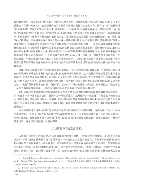 机》中,胡塞尔曾用“平面生活”和“深层生活”来分别形容自然态度与先验态度下的状态 。在胡塞尔看