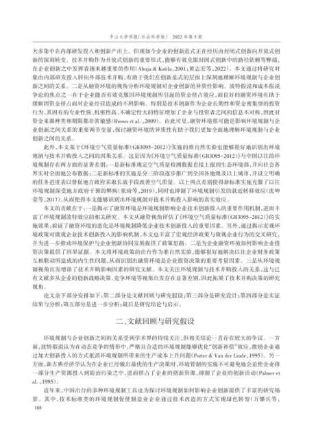 富了环境规制波特效应的相关研究。本文从融资视角评估了《环境空气质量标准(GB3095-2012)》的实