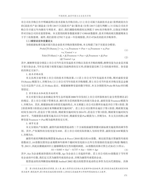 为检验新标准实施对重污染企业技术并购决策的影响,本文构建了如下双重差分模型: