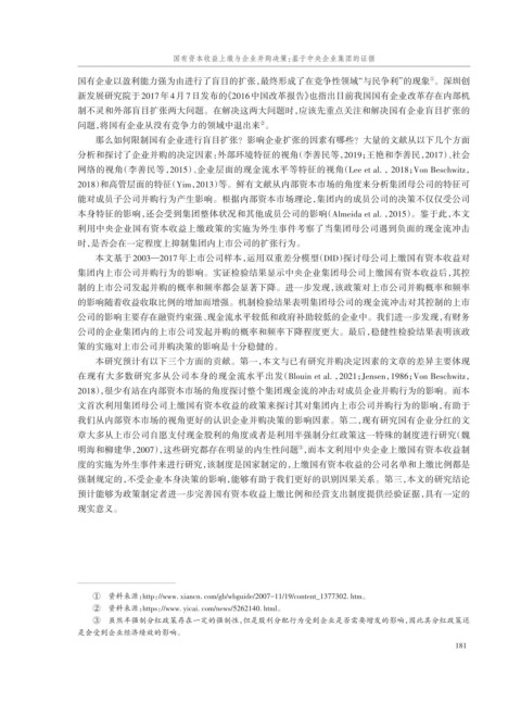 集团内上市公司并购行为的影响。实证检验结果显示中央企业集团母公司上缴国有资本收益后,其控