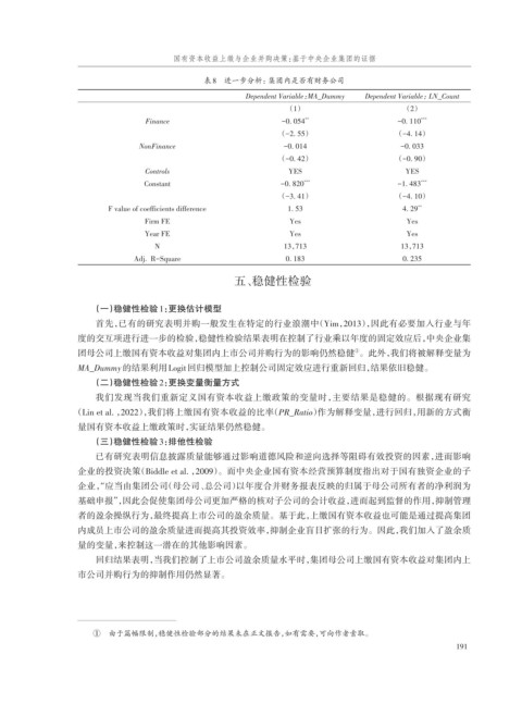 团母公司上缴国有资本收益对集团内上市公司并购行为的影响仍然稳健 。此外,我们将被解释变量为