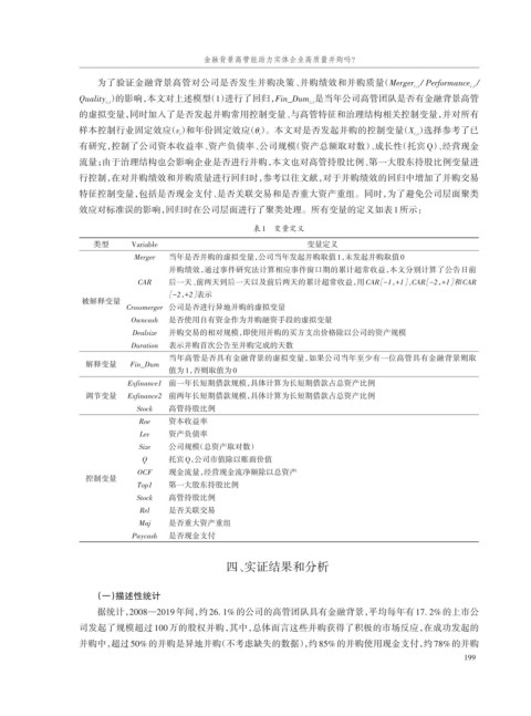 的虚拟变量,同时加入了是否发起并购常用控制变量、与高管特征和治理结构相关控制变量,并对所有