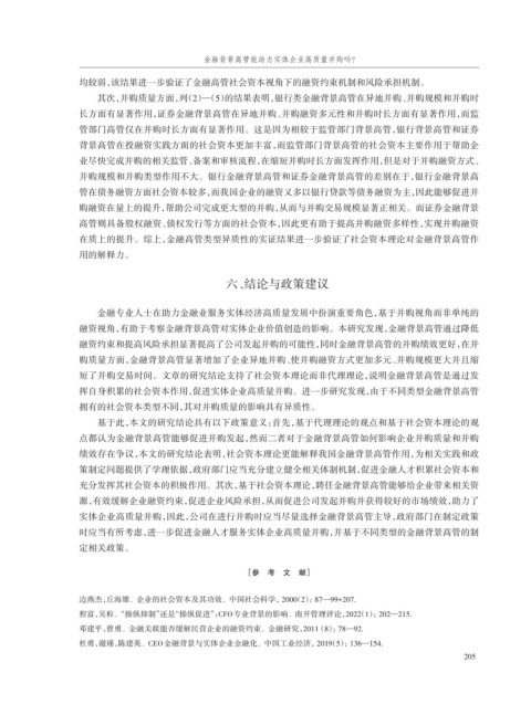 时应当有所考虑,进一步促进金融人才服务实体企业高质量并购,并基于不同类型的金融背景高管的制