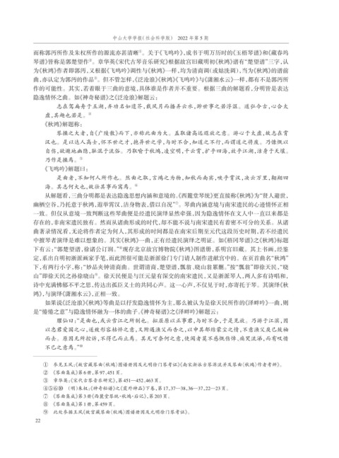 中擅琴者演绎是难以想象的。其实《秋鸿》一曲,正有经遗民演绎之明证。如《梧冈琴谱》之《秋鸿》标题