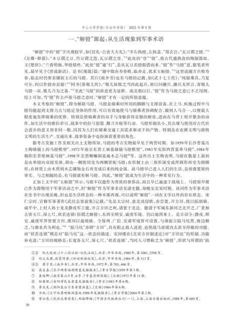 已作为器物用于军事活动之中,但“解镫”作为军事术语见诸史籍,却晚至北宋时期。该词作为军事术语