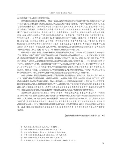 节奏,导致如“犯格”“落韵”“犯韵”等病犯的出现,严重者还会影响到科考仕途。这从唐宋时期试赋因犯