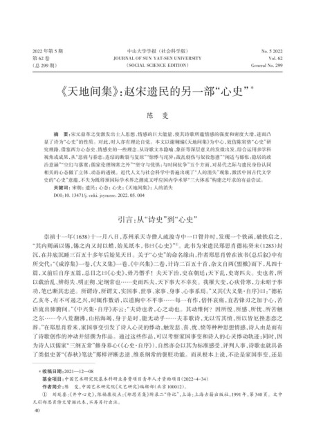 显了诗为“心史”的性质。对此,时人亦有理论自觉。本文以谢翱编《天地间集》为中心,效仿陈寅恪“心史”研