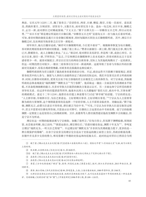 的理政模式。嘉定十二年(1219),他曾经在经筵上和袁燮专门讨论“择宰相”的话题。宁宗的看法是: