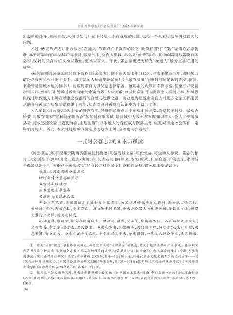 《故河南郡封公墓志铭》(以下简称《封公墓志》)撰于金天会七年(1129),即南宋建炎三年,彼时陕西